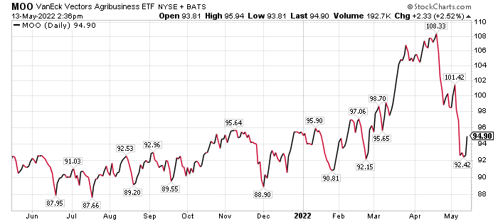 Investors should weight the purchase of the ETF VanEck Agribusiness (MOO), said Bob Carlson, a pension fund chairman who also leads the Retirement Watch investment newsletter. The fund, which I personally have owned for years, seeks to track the MVIS Global Agribusiness Index. The index is composed of companies that generate at least 50% of their revenues from agrichemicals, animal health and fertilizers, seeds and traits, farm/irrigation equipment, farm machinery, aquaculture, fishing, livestock and more.
