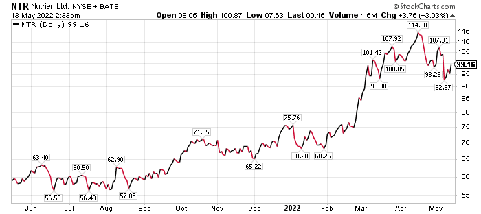 Nutrien Ltd. (NYSE: NTR), a Canadian fertilizer company based in Saskatoon, Saskatchewan, is the largest producer of potash and the third-largest producer of nitrogen fertilizer in the world. The company’s interim chief executive Ken Seitz said Nutrien will boost potash production if supply problems worsen in Russia and Belarus, the world’s second- and third-largest potash-producing countries after Canada.