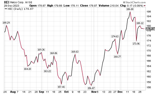HEICO’s management indicated that the performance of recently acquired Wencor is exceeding expectations. However, HEICO provided color for 2024 organic growth and margin expectations that assume reduced gains. Even though consensus estimates already forecast slowing growth, it is not a positive for HEICO, DiPalma wrote.