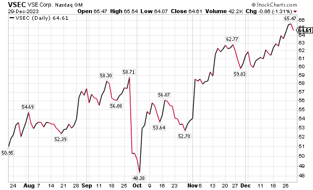 William Blair reaffirmed its “outperform” rating on VSE on Dec. 21. The main risk to VSE shares is lumpiness associated with its aviation services margins, Di Palma wrote. However, he raised 2024 estimates to further reflect commentary from the analysts’ day VSE held in November.