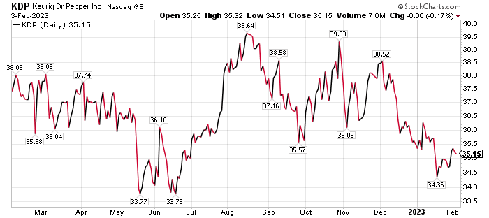 Keurig Dr Pepper (NASDAQ: KDP), of Burlington, Massachusetts, is another recommendation of BoA. The investment firm placed a $45 price objective on the stock. The valuation takes into account KDP’s “attractive portfolio” of products that is equipped to grow sales and earnings, particularly with the addition of the C4 energy drink brand, BofA wrote.