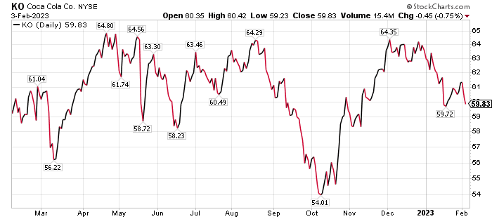 Coca-Cola is recommended both by BofA and Mark Skousen, PhD, who heads the Forecasts & Strategies investment newsletter. Coca-Cola is among the Flying Five stocks that Skousen recommends by choosing five Dow Jones Industrial Average positions that have the lowest price from a list of the 10 highest-yielding companies in the index.