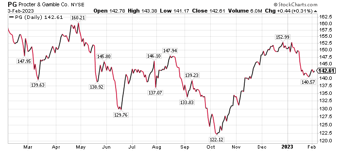 Procter & Gamble is a pick of Jim Woods, who concurrently leads the Intelligence Report investment newsletter and the Bullseye Stock Trader. The latter service recommends stocks and options, while Intelligence Report newsletter features stocks that typically pay dividends.