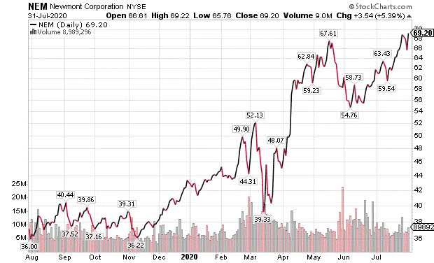 The price of precious yellow metal reached an all-time end-of-day high of $1,975.90 and a new intraday peak of $2005.40 per ounce on July 31 to boost the six dividend-paying gold investments to purchase. The rise has been aided by investors seeking a refuge from the U.S. dollar’s fall of more than 10% since March 19, inflationary federal spending and the threat of tax hikes if Democrats win the next election to gain control of both the White House and Congress.