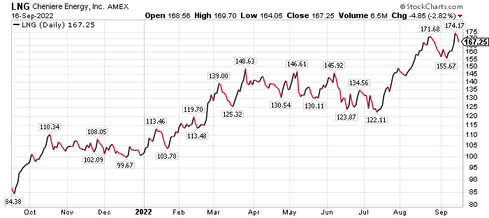“Natural gas should continue to be a good investment, as long as Europe is looking for ways to reduce dependence on Russia,” Carlson told me. “In addition, the natural gas drillers in the U.S. are focused on increasing cash flow and earnings. They’re not inclined to maximize drilling expenses in the short run to increase output.”