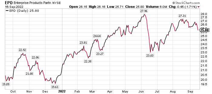 Skousen, editor of the Forecasts & Strategies investment newsletter, recently wrote to his subscribers that he is recommending two stocks that are positioned to ride the wave of investor interest in natural gas. One is Enterprise Products Partners (NYSE: EPD), with a return of 28.9% so far in 2022.