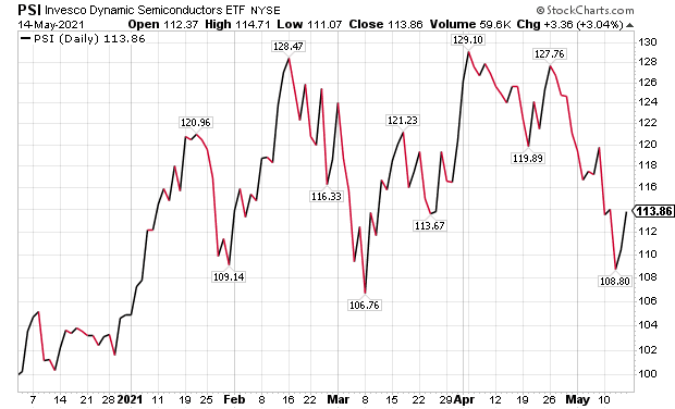 The semiconductor stocks have slid from their highs due to such concerns, coupled with revenue and earnings declines that are likely to be caused by the global semiconductor shortage, said Carlson, who also heads the Retirement Watch investment newsletter. Now is a good time to invest in the stocks, particularly with a diversified portfolio through an exchange-traded fund (ETF), such as Invesco Dynamic Semiconductors ETF (NYSE Arca:PSI), Carlson added.