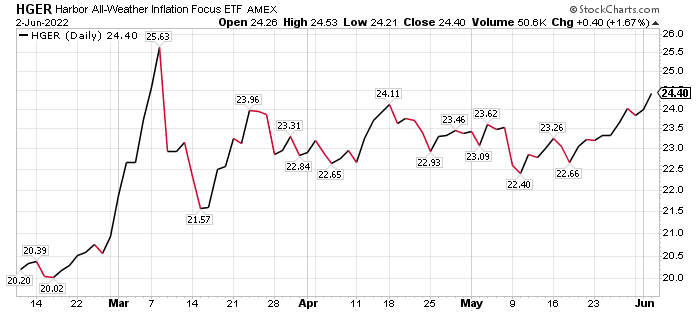 The Harbor All-Weather Inflation Focus ETF (HGER), designed as a commodities futures exchange-traded fund (ETF) to hedge against inflation, is a recently launched fund that I learned about from Michelle Connell, a former portfolio manager who heads Dallas-based Portia Capital Management. The fund is sub-advised by Quantix Commodities LP, a commodities solution boutique firm of former senior Goldman Sachs traders.