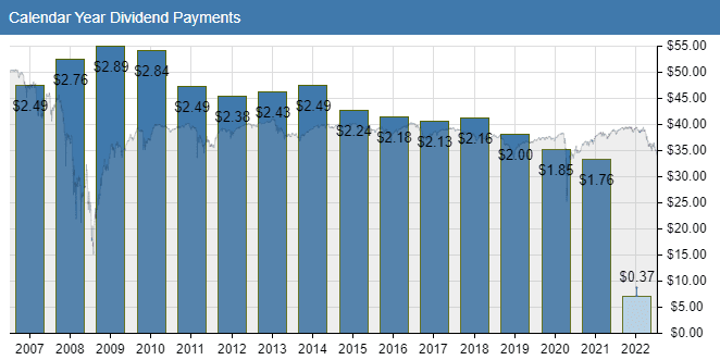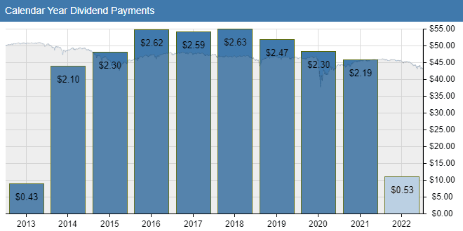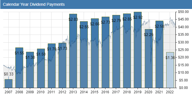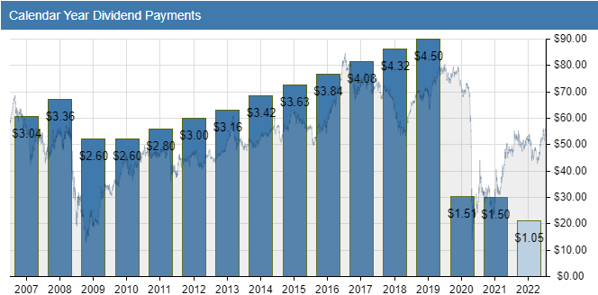 Due to a major price shock that caused the stock price to plummet 58.46% in March 2020 due to the financial crisis, the company was forced to suspend its dividend and later reinstated it in mid-2021.