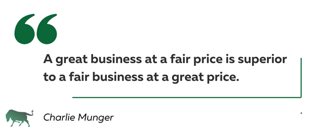 Charlie Munger was a lifetime business partner and friend of Warren Buffett. He is famously credited by the Oracle of Omaha as the one who swayed his focus from value stocks to purchasing high-quality businesses with the potential for long-term growth. Munger’s investment philosophy is largely characterized by the quote shown below, often misattributed to Buffett himself.