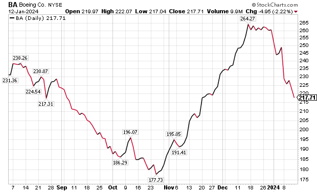 The open-ended risk is beyond the control of the Chicago-based Boeing Co. (NYSE: BA), since the Federal Aviation Administration (FAA) announced on Jan. 12 that it would launch heightened oversight of the aircraft company’s production and manufacturing. The actions followed just one day after the FAA formally notified Boeing that the agency has begun a formal investigation into the company due to the Jan. 5 incident when a door plug on a Boeing Model 737 MAX 9 detached from the left side of the plane and fell into a backyard near Portland, Oregon.