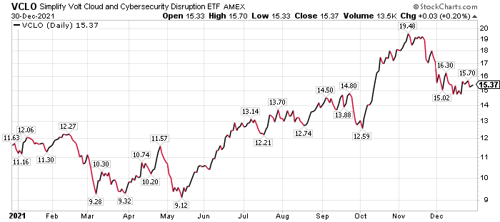 However, Simplify Volt Cloud & Cybersecurity Disruption (VCLO) stands out with its current dividend yield of 13.7%. It is possible that lofty dividend yield may not be sustainable, since the fund just launched on Dec. 28, 2020.