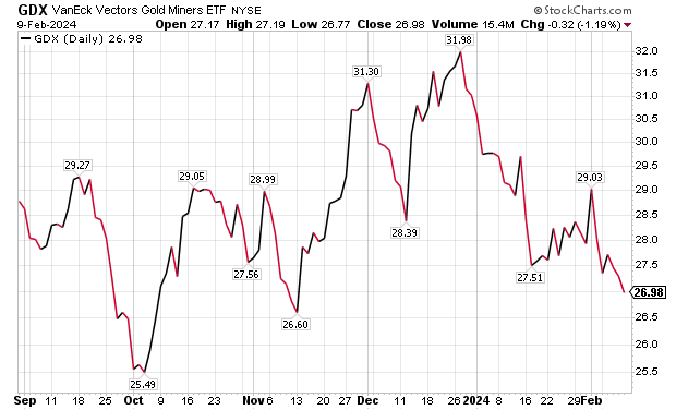 The largest holdings in GDX focus on major gold miners that tend to be less volatile and more mature in their business cycle than their smaller peers. These major gold-mining companies tend to be well-capitalized, have vast industry experience and international operations.