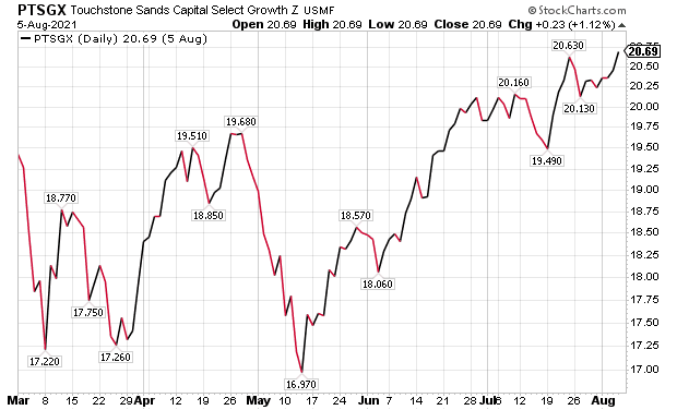 “The fund focuses on a small number of growth companies that the fund managers have studied closely and in which they have great confidence,” Carlson said. “Recently, the fund held only 30 stocks and had 58% of the fund invested in the 10 largest positions.”