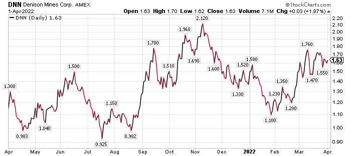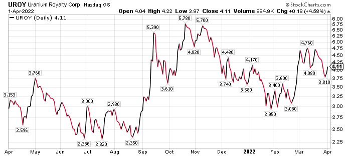 Canada’s Uranium Royalty Corp., of Vancouver, is a non-dividend-paying a royalty company that acquires revenue streams of uranium projects. The uranium price had been improving on a fundamental supply and demand imbalance before Russia’s invasion of Ukraine, said Melbye, who also is the chief executive officer of Uranium Royalty Corp.