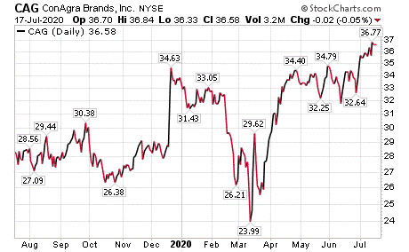 There are three top dividend-paying stocks that pay attractive dividend yields and are worth accumulating if investors expect the investing landscape to transition into a highly defensive one, Perry said. The stocks he likes the best for this type of situation, and their respective dividend yields, are Kraft Heinz Co. (NASDAQ:KHC), 4.65%, General Mills (NYSE:GIS), 3.03%, and Conagra Brands Inc. (NYSE:CAG), 2.32%.