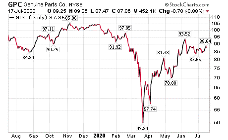 One of her top choices is Genuine Parts (NYSE:GPC), which pays a 3.7% dividend yield right now and is unlikely to suspend that payout for the foreseeable future. GPC offers a current dividend yield of 3.56%.