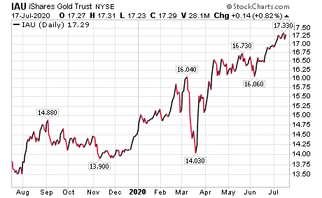 “The Federal Reserve has reacted to the downturn with historic monetary stimulus, and it will continue to do that for some time,” Carlson told me. However, IAU does not pay a dividend.