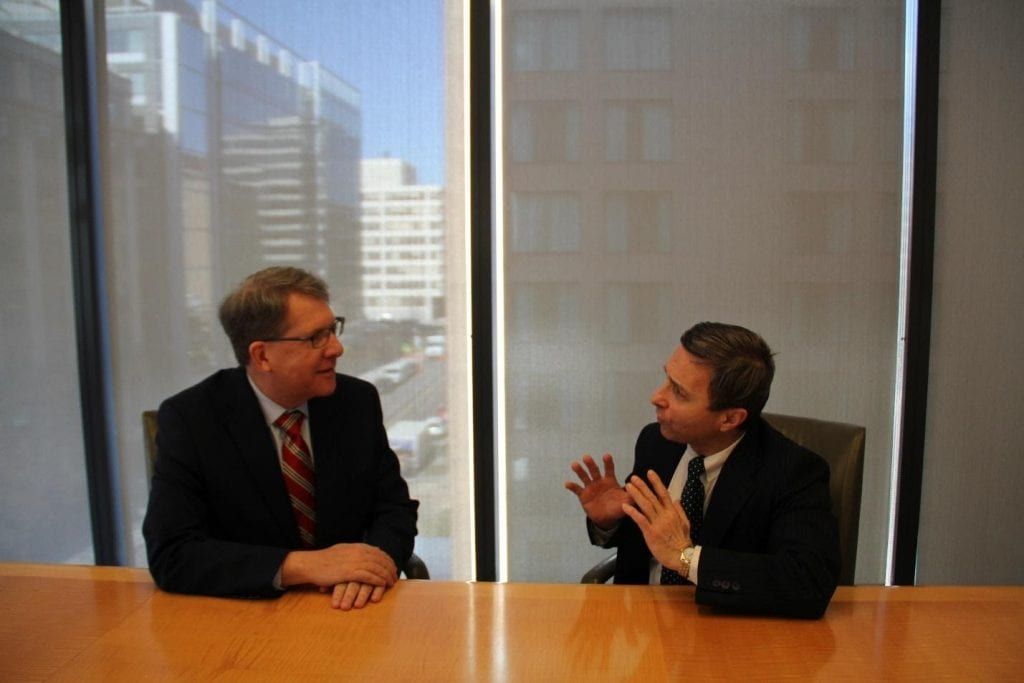 Paul Dykewicz meets with Jim Woods before COVID-19 to discuss new investment opportunities.