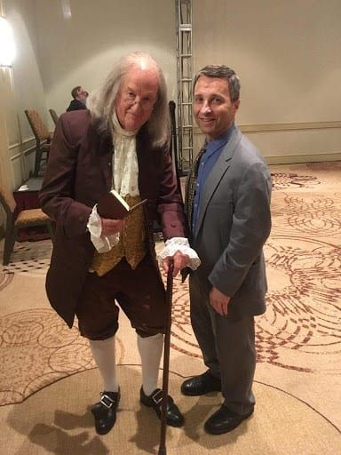 Mark Skousen, a descendant of Benjamin Franklin, meets with Paul Dykewicz in Philadelphia. Skousen’s premium investment services consist of Home Run Trader, Five Star Trader, TNT Trader and Fast Money Alert.