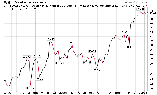 Woods told me he recommends Walmart in the Income Multipliers portfolio of his Intelligence Report newsletter partly due to its history of raising annual dividends. The stock also surged by rising 10.88% in the past month and 12.72% in the last three months.